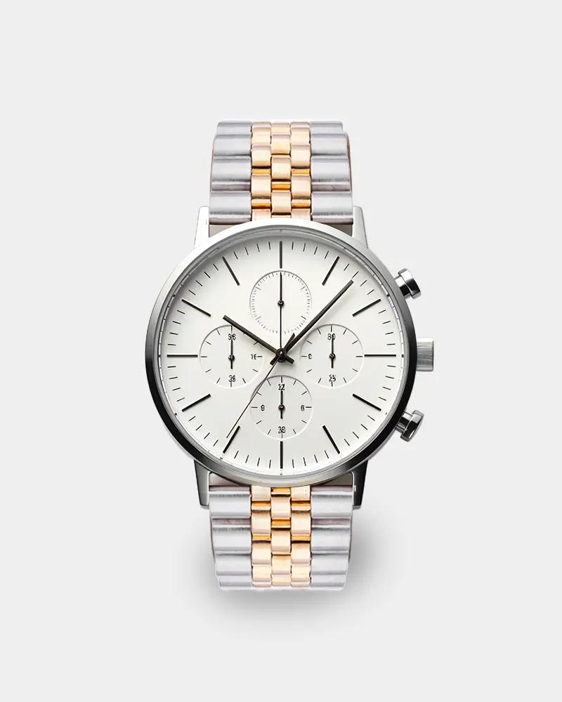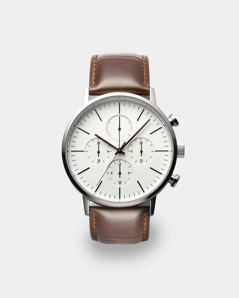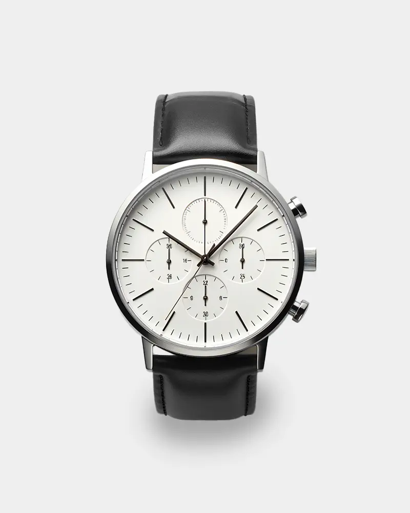 שעון בגדול 42 מ"מ, נקי, מנימליסטי, עובד על מנגנון קוורץ, כרונוגרף, מתאים לאירועים וללבוש יום יומי